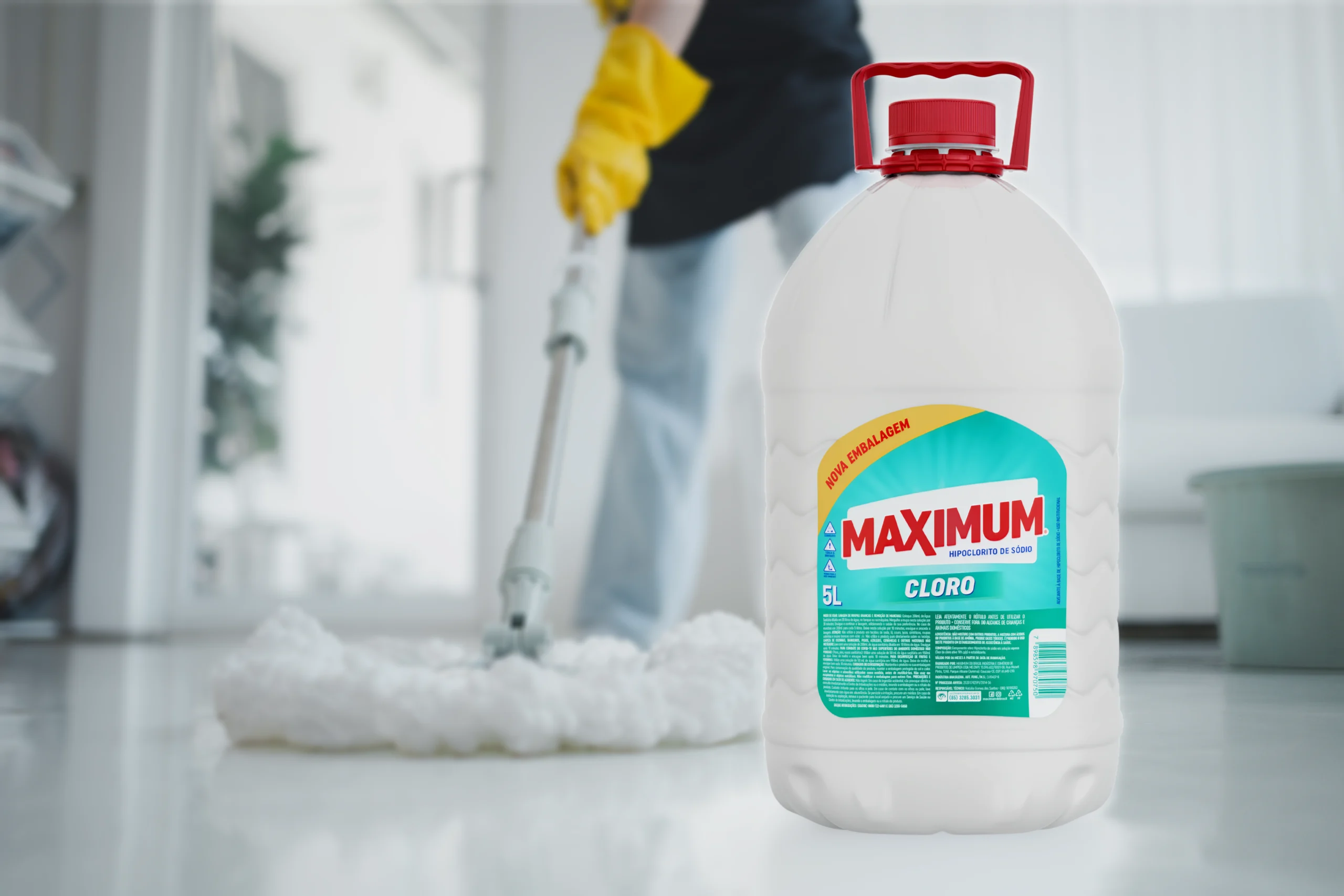 Máxima concentração para resultados imediatos. Diferente dos alvejantes comuns, o Cloro Maximum é focado na limpeza bruta. Ele desintegra manchas escuras de umidade, clareia pisos encardidos e elimina odores fortes instantaneamente.